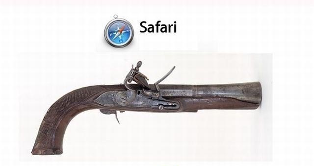 Web browser, adalah sebuah alat yang memudahkan kita membuka sebuah halaman web, dalam perkembangannya web browser kini memiliki menu yang beragam tergantung keperluan si pengguna web browser itu sendiri. nah dibawah ini adalah perbandingan 5 web browser yang paling banyak digunakan di dunia, tapi apa jadinya jika web browser dibawah ini disamakan dengan sebuah senjata?